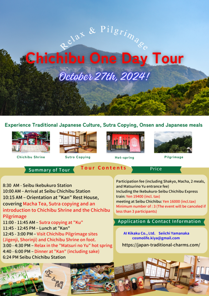 Discover the spiritual and historical wonders of Chichibu with our unique pilgrimage tour. This one-day journey takes you through the sacred sites of Chichibu, offering a deep dive into Japan’s rich religious heritage while providing a peaceful retreat from the hustle and bustle of city life.